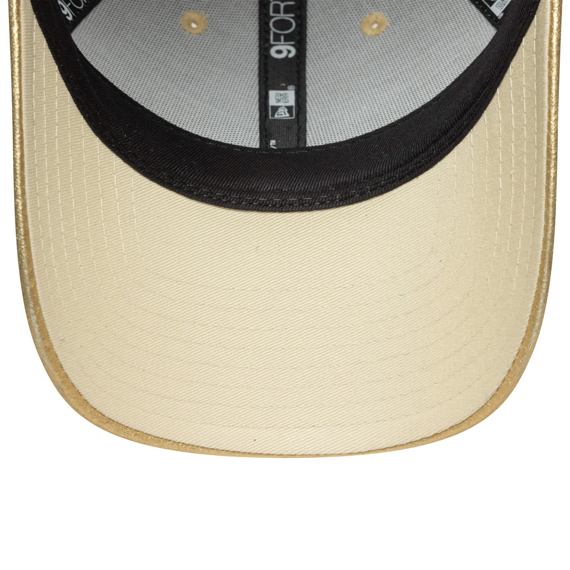 · Dámska šiltovka New Era 9FORTY Metallic Gold s menším logom New York Yankees na prednej strane.